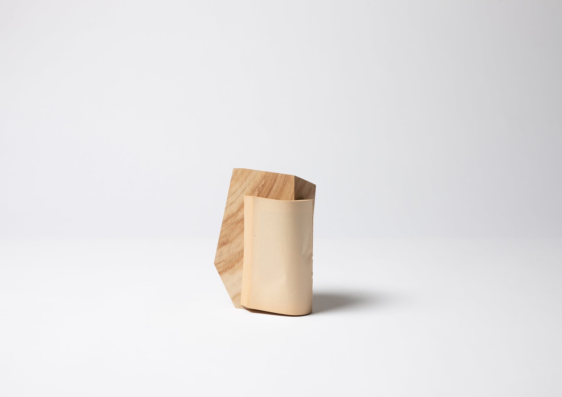 Fragile Exhibition in June 2023 is pleased to present "SILENT BOOK," a solo exhibition by Ryuta Iida. This work, which he began working on in 2019, the year of the Corona Disaster, shows a book that has passed through the hands of many people and is now crumpled. For Ryuta Iida, who sculpts from paper and used books, sculpting means sealing them, and in the past he has separated "reading" from books and sculpted a different body language, keeping the story inside. In this latest work, "SILENT BOOK," a "pedestal" appears for the first time in this act of sealing, and the book, which is said to be extinct soon, is crystallized like a fossil.