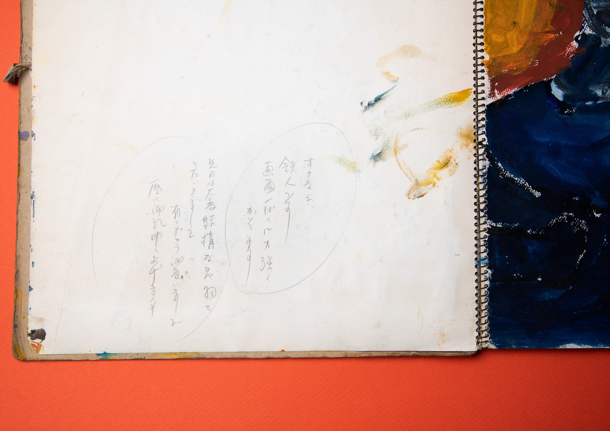 Judging from the fact that it contains Tetsujin 28-go, a portrait of Obake no Q-taro (Obake no Q-taro) reminiscent of a large-headed picture (Tom-kun, did you know Sharaku!?), and that the sketchbook was drawn by a second-grader in elementary school to design a New Year's card for the Year of the Ox, this sketchbook must have been made in 1965.yearIt is thought to have been painted around 1965. It was the middle of the Showa era, a time when the postwar atmosphere was still strong. It was an idyllic time when kites could be seen flying everywhere in vacant lots and parks in Tokyo during the New Year holidays. Tomoo's eyes have captured this scene clearly.