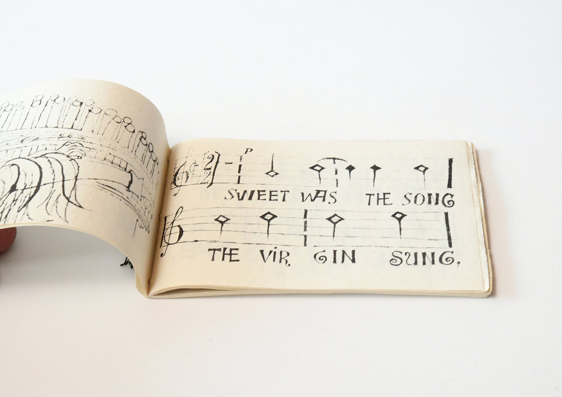The book's title, "Sweet was the Song the Virgin Sung," is an old hymn of unknown authorship. It is also known as the "Lute-book lullaby," and was originally a solo piece accompanied by a lute. The lute is a plucked-string instrument that is similar in shape to the oud in the Middle East and the biwa in Japan, and produces sound by plucking the strings, without using a bow. This lute lullaby was compiled and established by the lutenist William Ballet in the early 17th century, and is an old piece that is now sometimes sung on Christ's birthday.