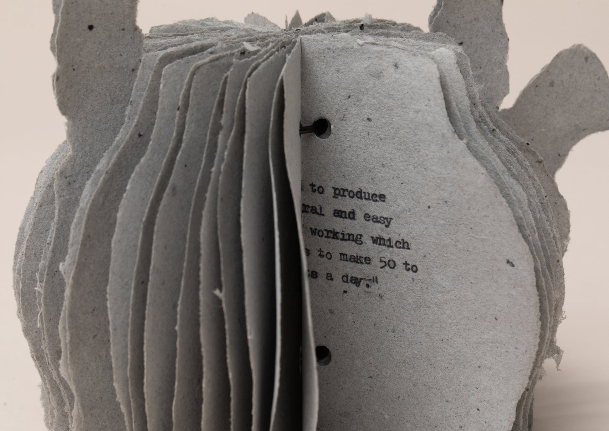 Warren made sure to do the molding as well as the mixing of the ceramic clay himself. Erica not only bound books, but also made her own paper and typed on a typewriter. It is precisely because Erica respected her father-in-law, Warren, and carefully observed his work that she was able to create her own memorial to him. I am honored to be able to present this body of work in Japan.