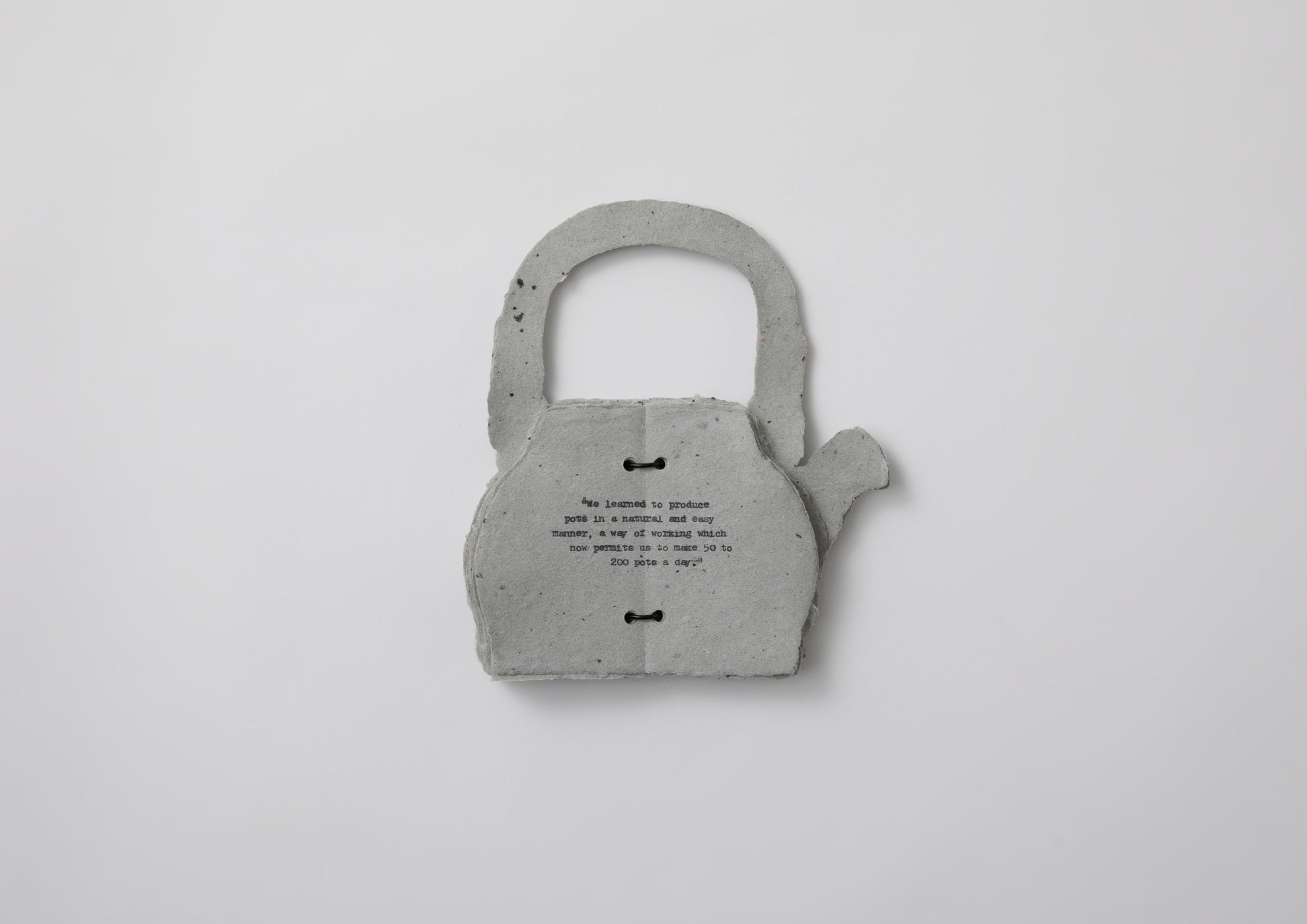 By the way, his first assignment at Leach Pottery was to make 50 mugs and small soup plates in one day, and he actually made 600 of them in order to get all 50 approved. Erika's "Thoughts About Pots," too, are in the form of ordinary, familiar utensils, the same size as the real thing, unadorned and modest. Just like Warren's vessels. The typewritten text on the pages is both humorous and solemn. In addition to Warren's own words, they include those of his first wife, Alix MacKenzie, and his teachers Bernard Leach and Shoji Hamada.