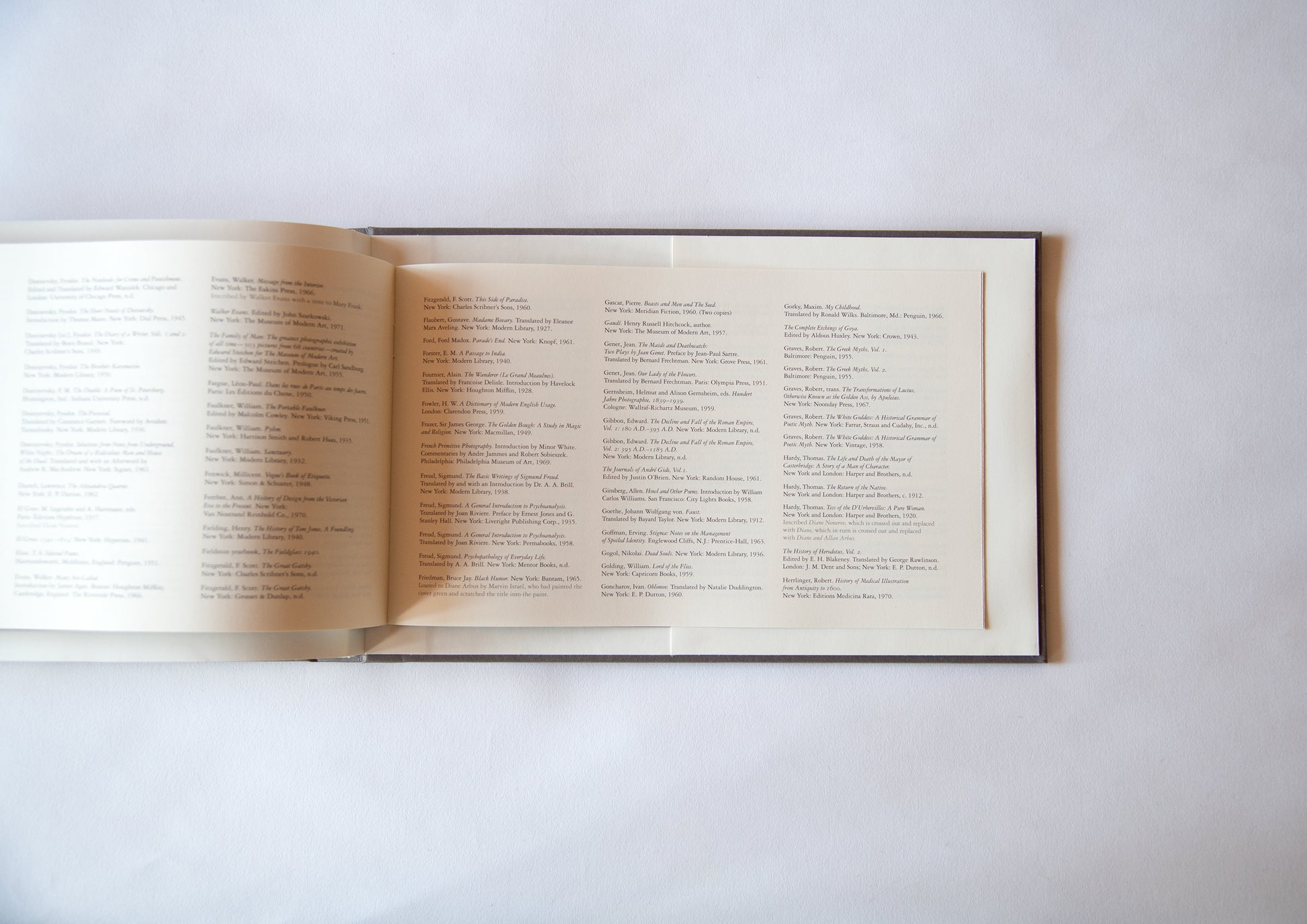 This book documents the private book collection of photographer Diane Arbus (1923-1971). The book is accordion-folded, and when opened, reveals a horizon of over eight meters of bookshelves. It is a book that will never cease to intrigue you as to what books she once read and held on to, after continuing to photograph those who were marginalized from society with a straightforward eye and meeting her sudden and mysterious end.