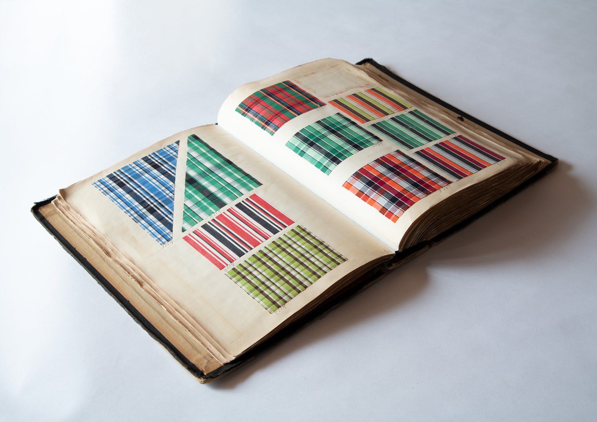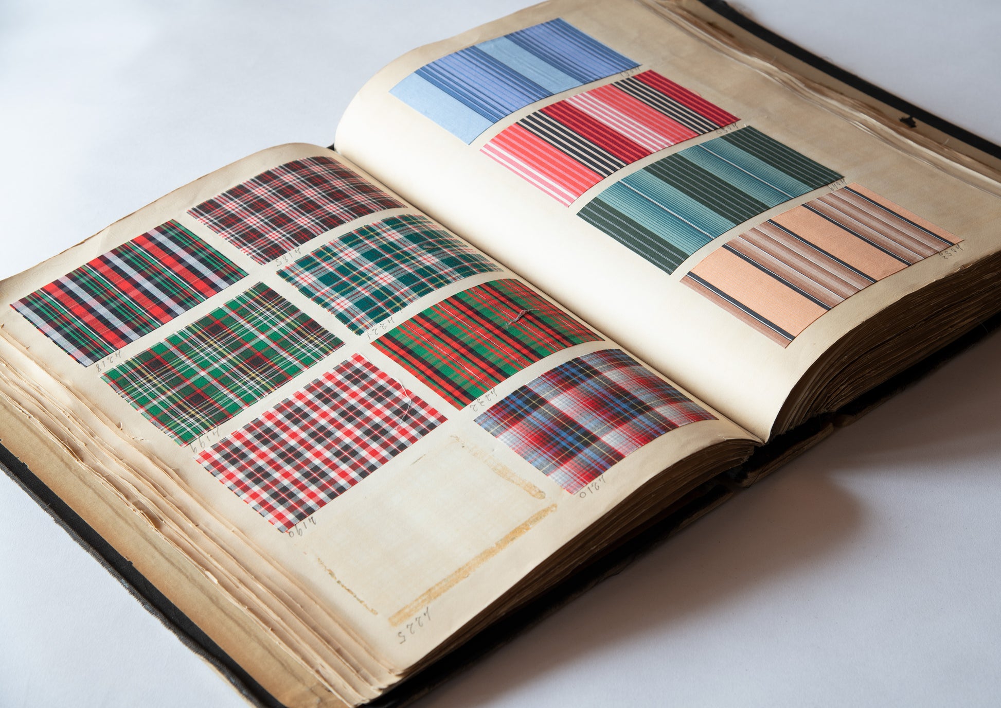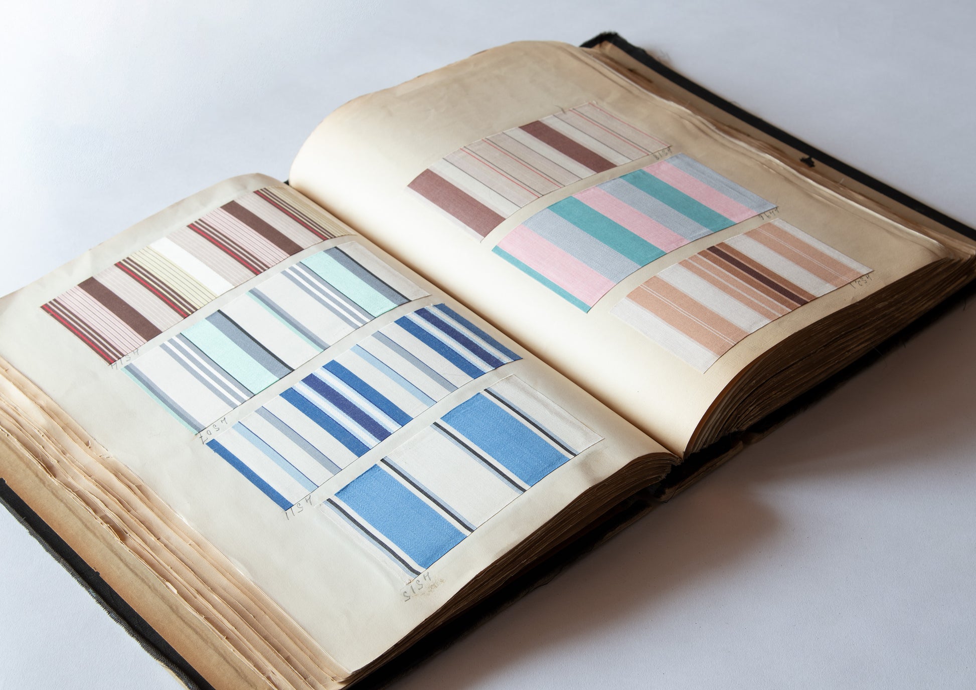 Incidentally, this book is a sample book of dress-shirt fabrics, and since there is a paste-up with the company name printed on the front page, it is believed to have been published by J. CLAUDE FRERES & CO., Paris.Claude Frères isThe company was founded in 1834 by Jean-Claude, a draftsman who moved to Paris in 1825.Across EuropeHe was an innovative businessman who invented and distributed the fabric swatch book, a medium aimed at textile designers of clothing and furniture.Claude Frères' fabric sample book,These works are kept in art museums across Europe as valuable archives of timeless creativity.
