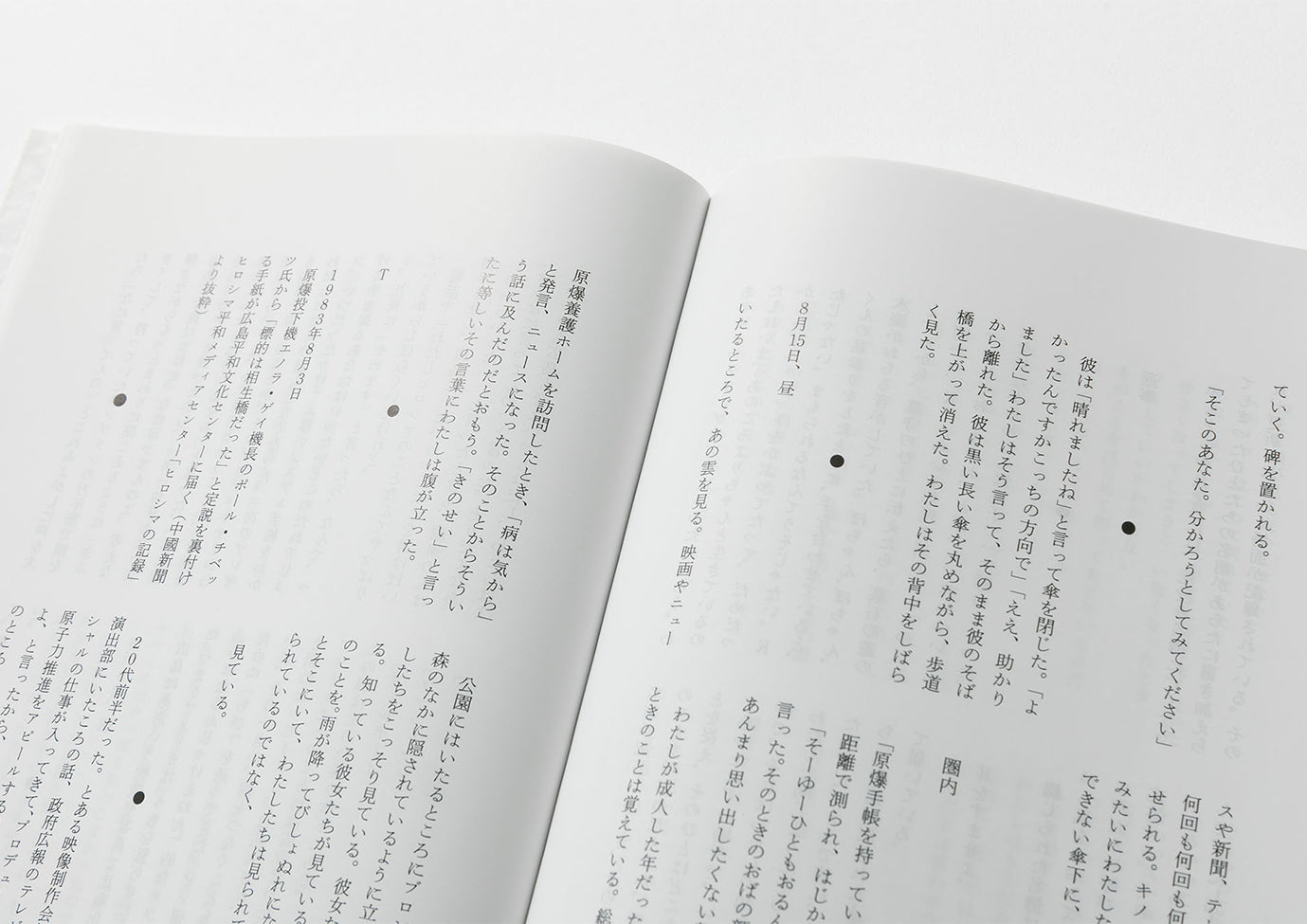 Tachibana's father was a bookbinder who was in charge of some of these "registers." After his father's bookbindery, which was located in Hiroshima City until a few years ago, closed, artist Tachibana Fumio took photographs of Hiroshima and Tokyo, and his brother, director and sculptor Tachibana Hidehisa, wrote the novel "Dear Diary," and this book was born. As the handwritten words on the cover say, "The story of my family's books," this is a book in which the Tachibana family confronted Hiroshima.