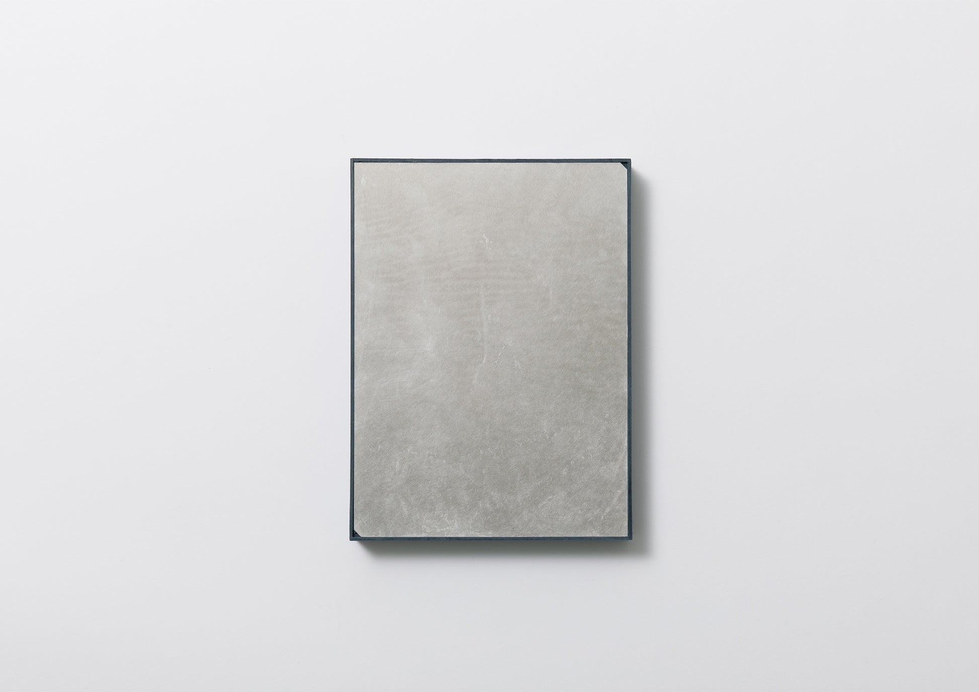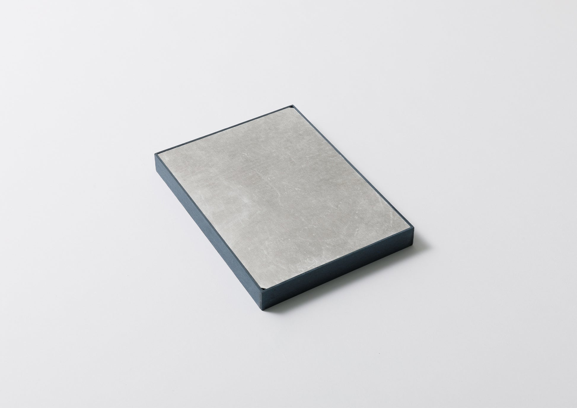 「墨とアルミニウムだけで描いた連作絵画の作品集と聞いて carton bleuの青が浮かびました。圧縮された紙の集積から浮かぶ表情がどこか水津くんの絵と重なるような気がして」と、都筑さんがふりかえっているように、この青は日本では見つけられない青で、この特装箱によく似合っています。