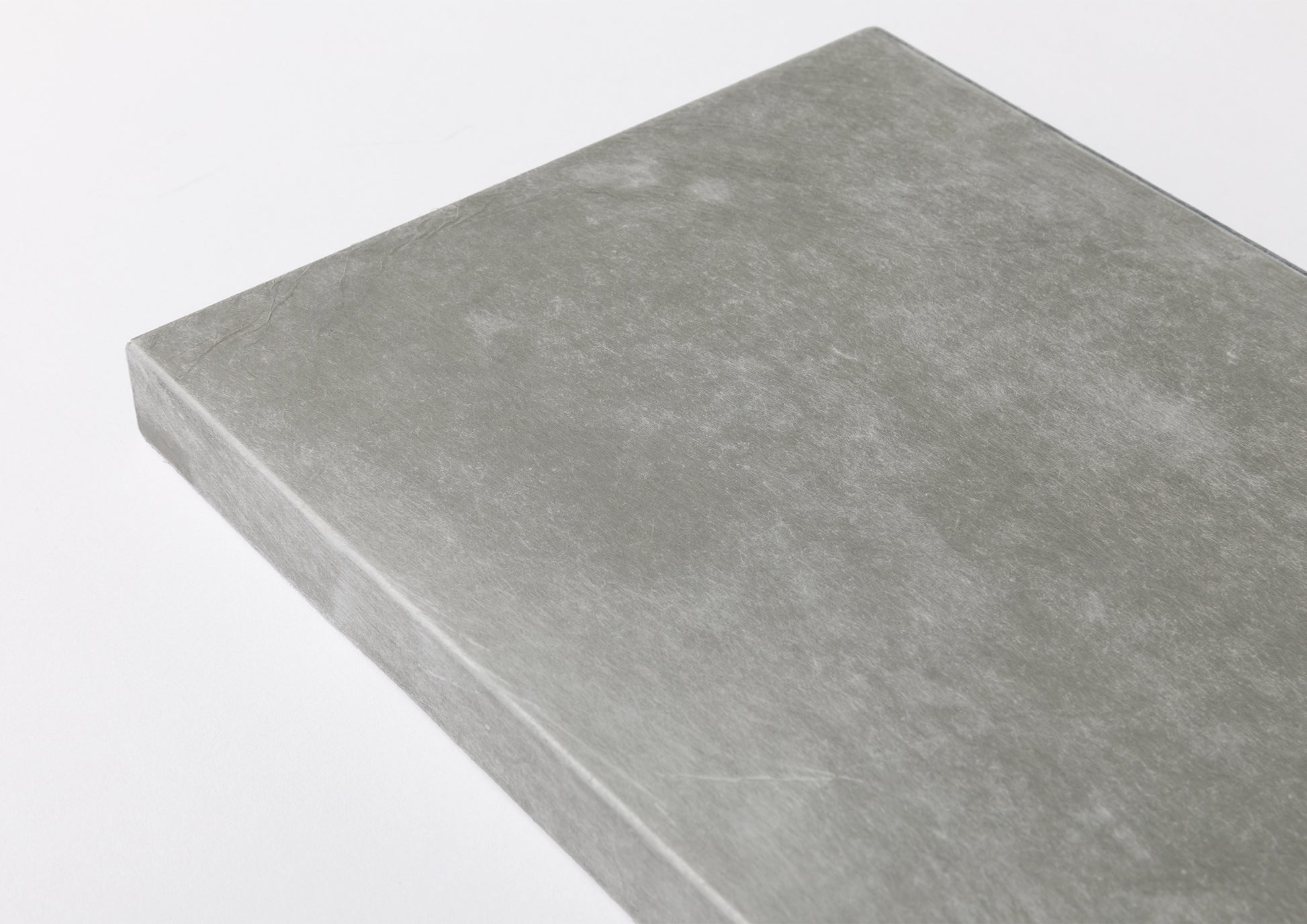 金属の板と青いボール紙。この組み合わせがとてもいい。青いボール紙は、フランスのルリュール界隈では「carton bleu tradition」として古くから伝わるボール紙だそうで、ふだんは上製本をつくるときに、表紙の下貼り用の芯材として使われてきたのだとか。通常のボール紙よりもさらに硬く、反りにくく、重みもある。だからなのか、重厚なルリュールをつくる現場では、いまでも重宝されているのだそうだ。